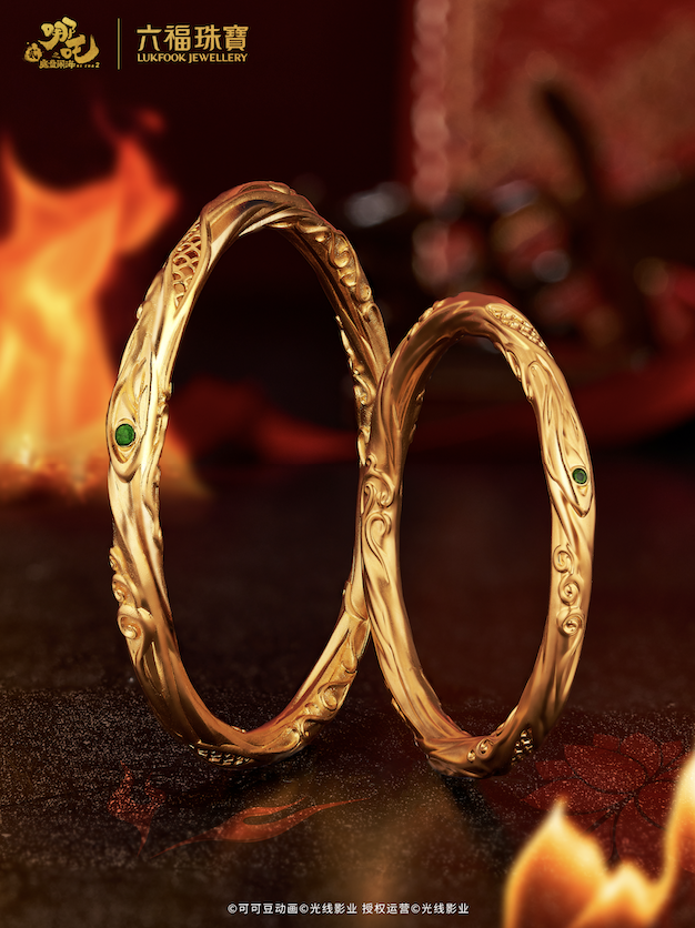 基于此,六福珠宝此次二度牵手“哪吒IP”,选取了电影《哪吒之魔童闹海》中具有代表性的哪吒、敖丙、乾坤圈、风火轮、混元珠等经典角色和元素,并运用传统古法制金工艺与硬足金鎏彩技术,将这些元素打造成多款璀璨华美、寓意丰富的足金首饰,也是对饰品的个性承载功能的深刻洞察。